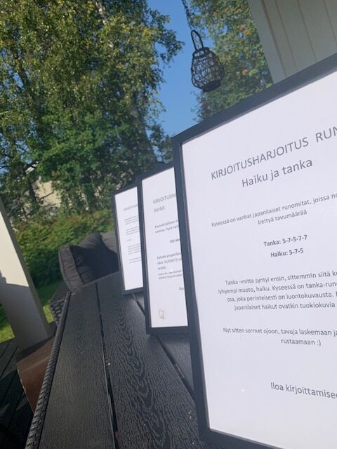 Tanka tai haikuruno syntyy helposti jos tykkäät laskea tavuja. Kyseessä on ikivanha japanilainen runomitta, joka on kestänyt aikaa ehkäpä sen vuoksi, että vaikka runossa on mittavaatimus, se kuitenkin luettuna kuulostaa vaivattomalta. Alkuperäisen perinteen mukaan haikussa on luontokuvassa, mutta kuka estää ottamasta modernimman asenteen!